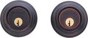 Configuration:Keyed alike (sets of four only), Finish:Distressed Antique Nickel (RELIEVED) Baldwin's low-profile cylinder deadbolts feature heavy-gauge steel cases for security and solid brass mechanisms for smooth operation. When extended, the deadbolt has a 1' throw, which reaches into a saw-proof, hardened steel insert. Available keyed alike in sets of four.See options to choose configuration and finish. Adjustable backset fits both 2-3/8' and 2' backset measurements. Designed for 1' thick doors. Spacers available for 1-3/8' doors; see accessories. For thicker doors, use acc